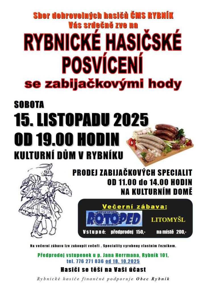 Prodej zabijačkových specialit a večerní zábava.