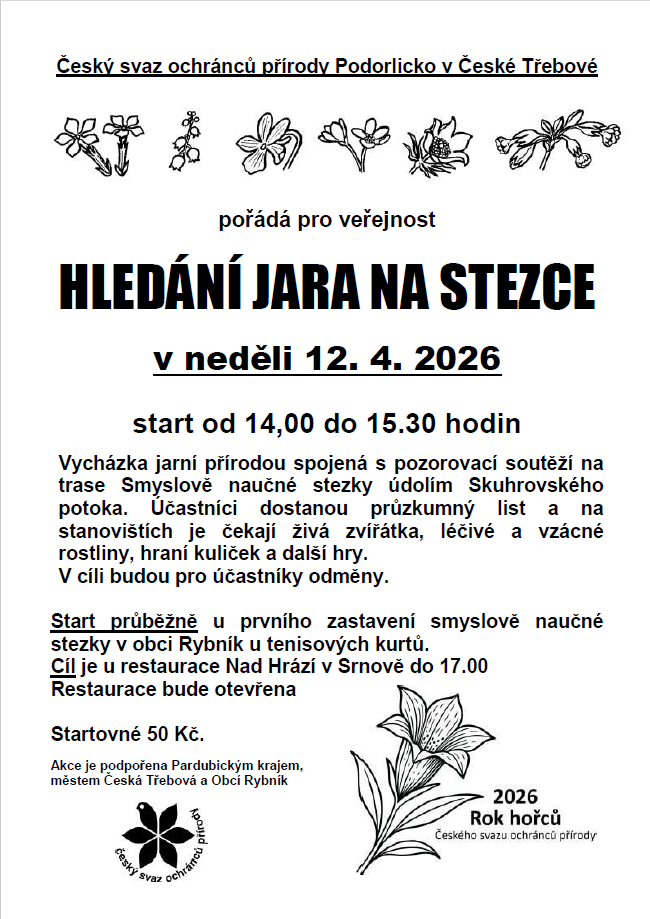 Vycházka jarní přírodou spojená s pozorovací soutěží na trase Smyslově naučné stezky údolím Skuhrovského potoka.
